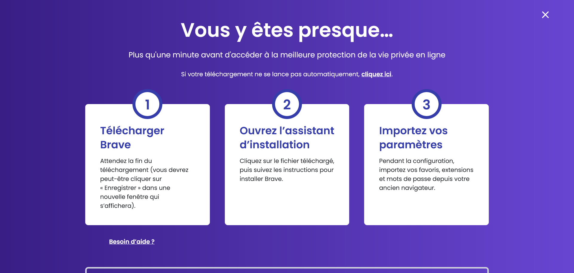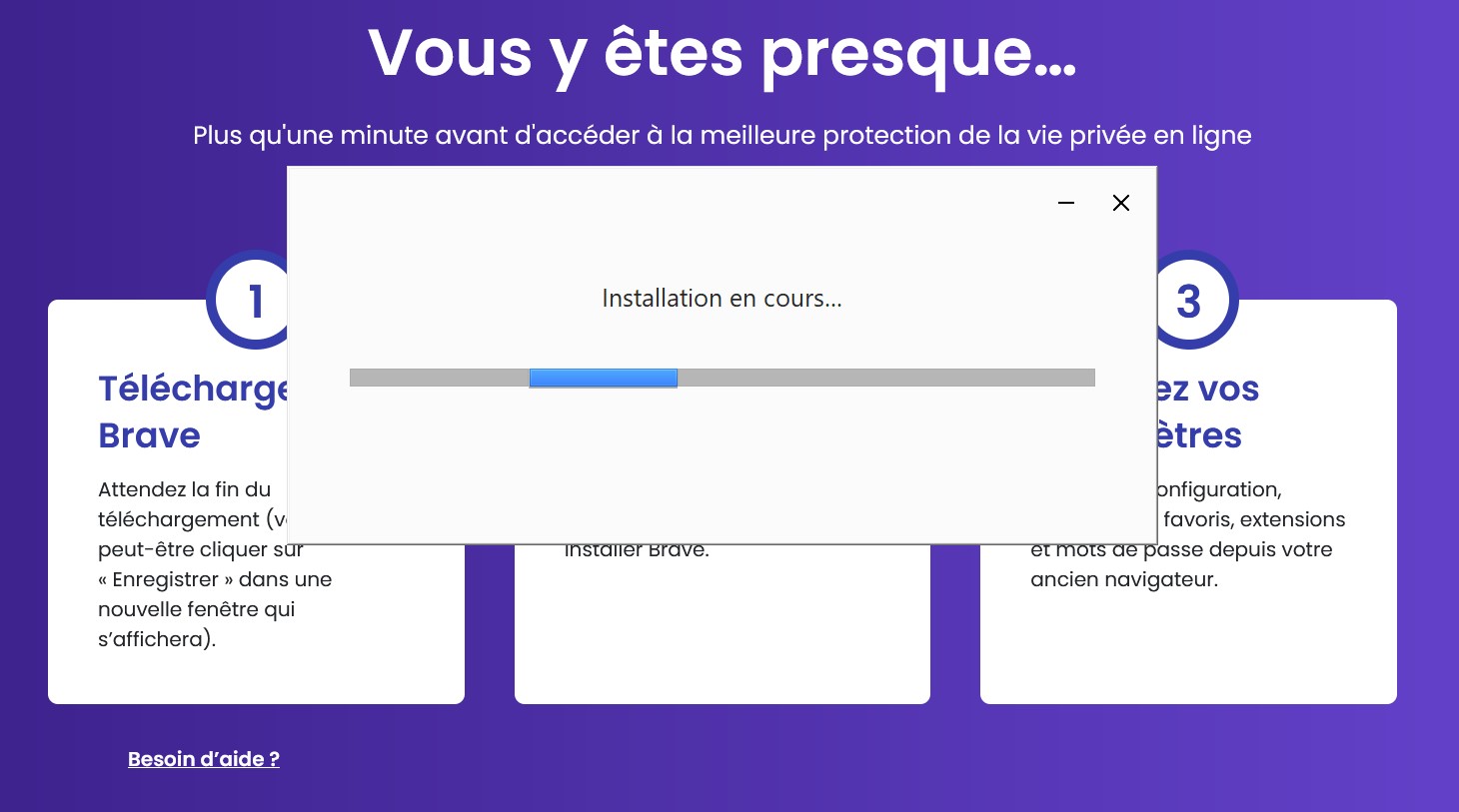 Cliquez sur le bouton si dessous pour installer le navigateur. Revenez sur cet onglet si vous rencontrez des difficultés lors de l'installation.