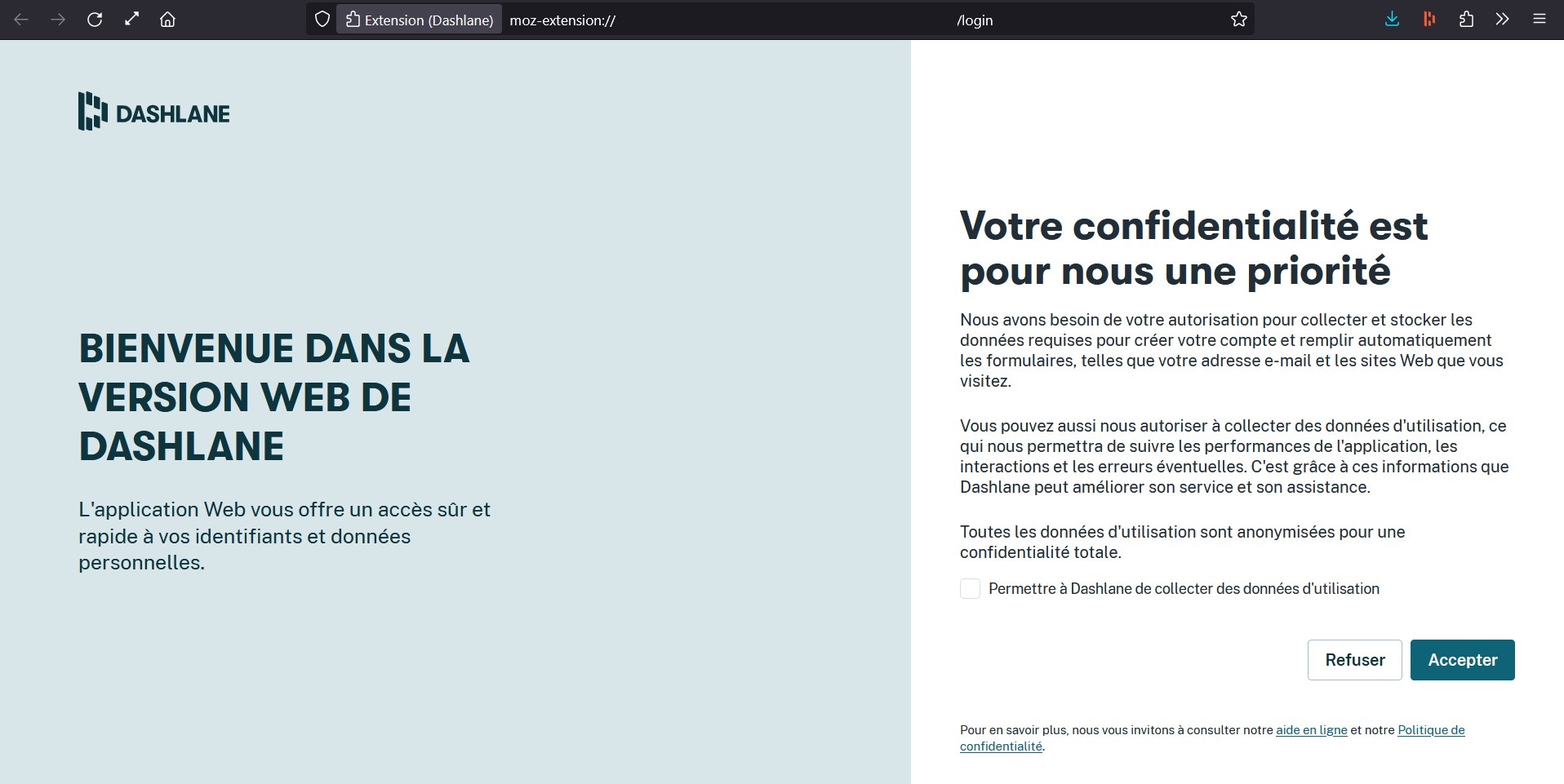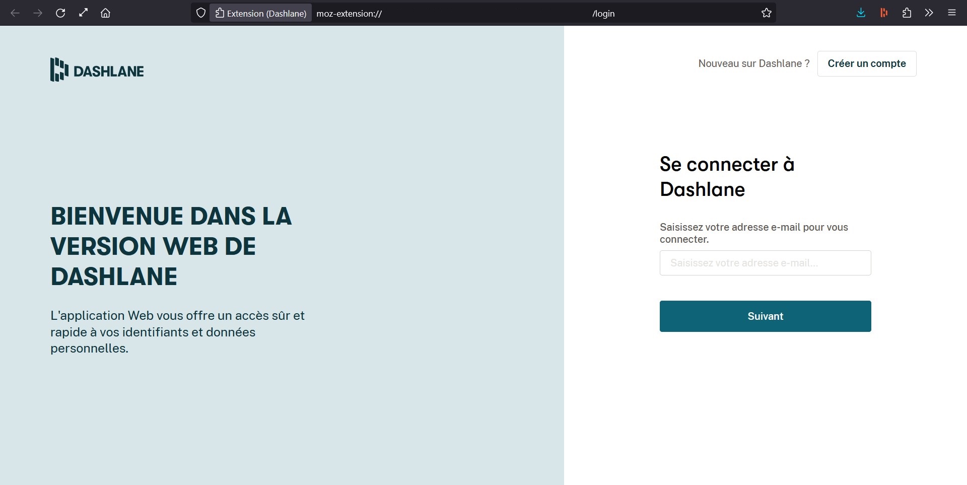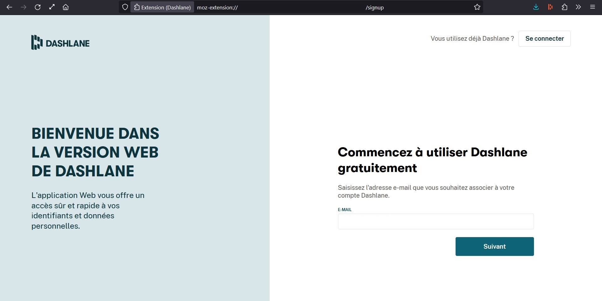 Pour vous inscrire sur Dashlane vous devez passer par leur extension de navigateur. Donc cliquer sur Télécharger.
