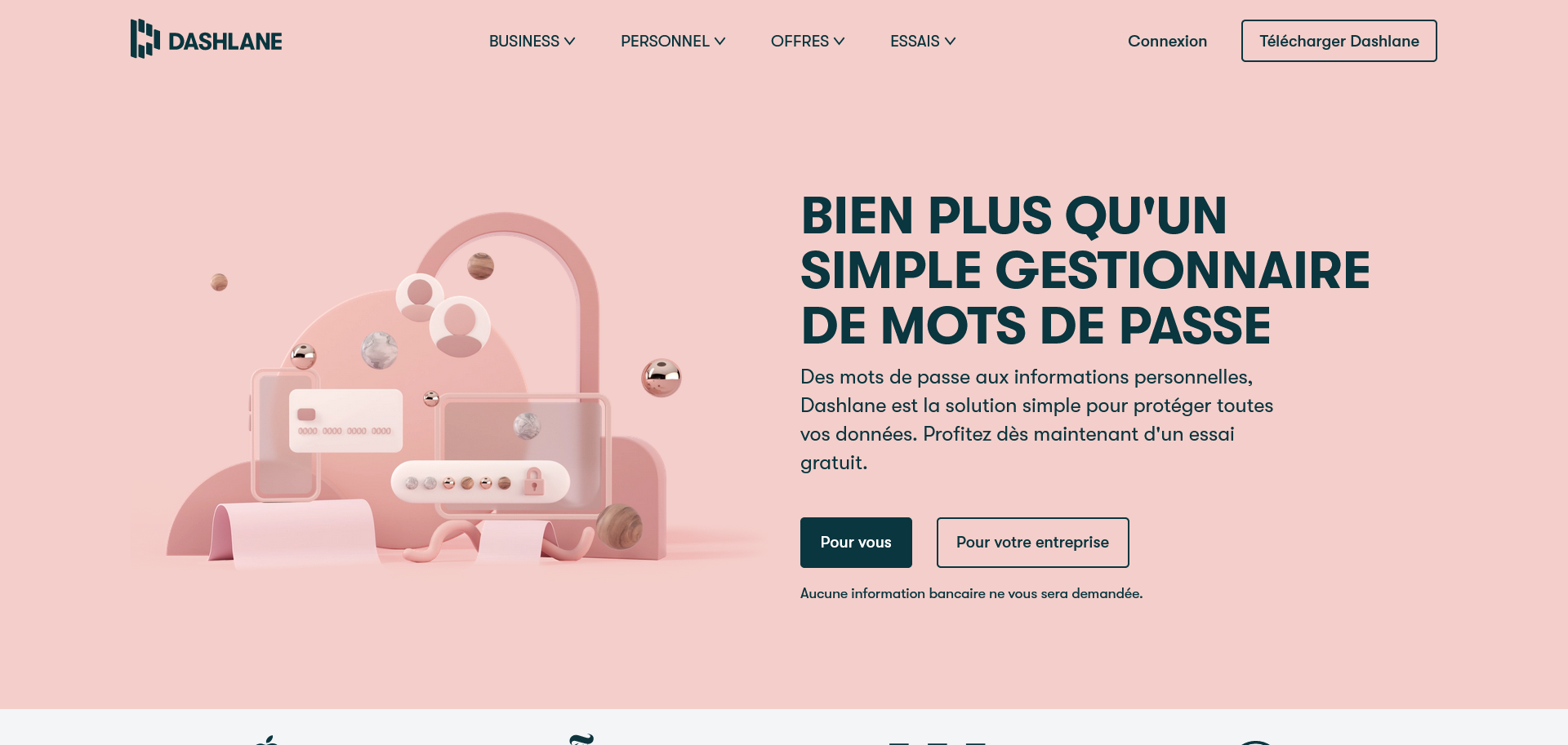 Dans son offre gratuite Dashlane permet d'enregistrer que 50 comptes.