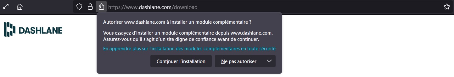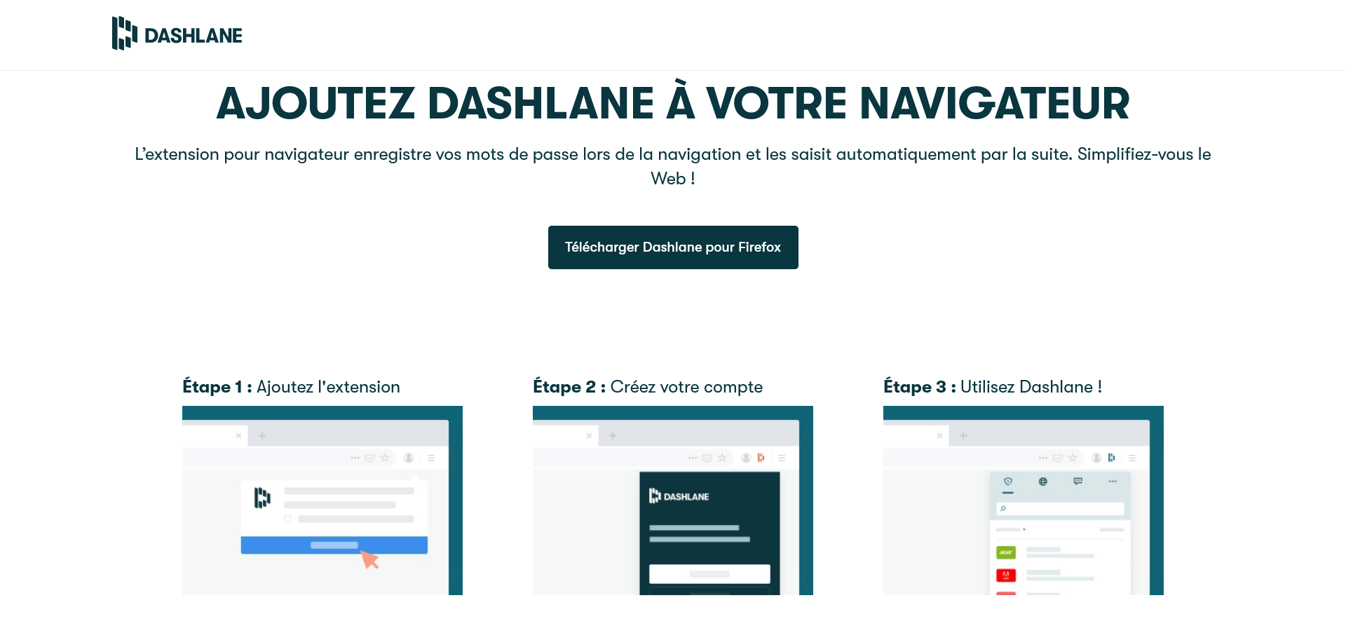 Cliquez sur le bouton si dessous pour installer Dashlane. Revenez sur cet onglet si vous rencontrez des difficultés lors de l'installation.