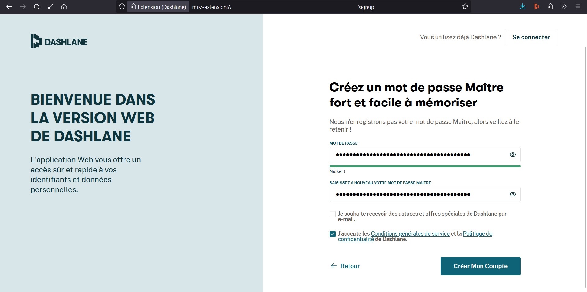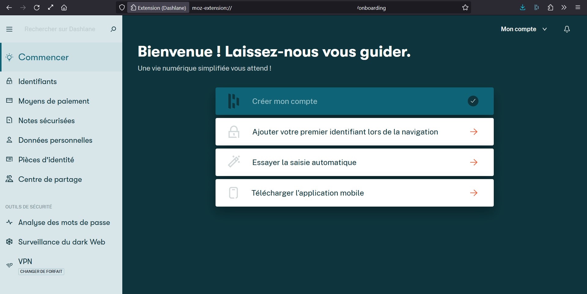 Laissez vous guidez par Dashlane dans la configuration de votre compte.